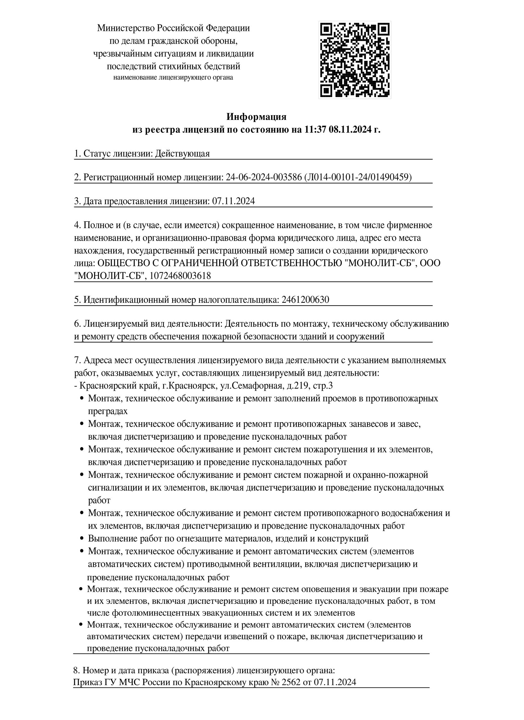 г.Красноярск, ул. Семафорная, 219, стр. 3 офис 2 monolitsb24@mail.ru